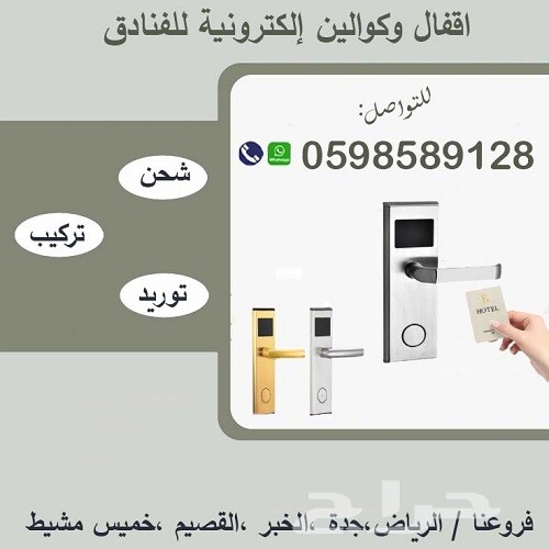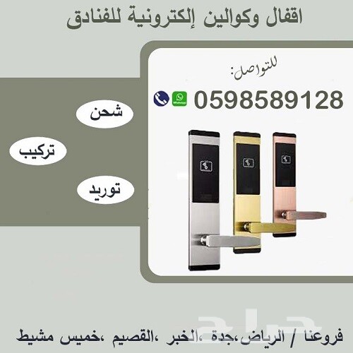 اقفال وموفرات كهربائية وكوالين الكترونية تقنية الجيل الثالث للفاندق والشقق المفروشة قفل باب الكترونى بشاشة تاتش وبصمة إصبع وموفرات الكهرباء تعمل بالكارت والمفتاح العادي في حالة للطوارئ كما تتميز الأقفال بسهولة الاستخدام فيمكن الدخول بالبصمة أو الرقم السري، بضمان عامان ضد عيوب الصناعة ويوجد لدينا خدمة التدريب والبرمجة والتركيب والصيانة يوجد شحن لجميع انحاء المملكة السعوديّة، فروعنا في "الرياض، جدة، الخبر، خميس مشيط". ولنا فروع آخرى في البحرين. التواصل الجوال أو واتساب: 0598589128 #اقفال_و_كوالين #اقفال_و_كوالين_الكترونية_للفنادق_و_المكاتب #الكوالين_و_الاقفال_الالكترونية_بالكارت_و_البصمه #اقفال_و_كوالين_الأبواب #اقفال_و_كوالين_للشركات #أحدث_اقفال_و_كوالين #افضل_كالون_باب #أفضل_كوالين_ابواب #اقفال_و_كوالين_بالرقم_السري #اقفال_الفنادق_الالكترونية #موفرات_كهرباء #افضل_اقفال_و_كوالين #اقفال_و_كوالين_الكترونية_ذكية #اقفال_و_كوالين_الكترونية_جدة #اقفال_و_كوالين_فنادق #اقفال_و_كوالين_ديجيتال #اقفال_و_كوالين_شقق_مفروشة #اقفال_و_كوالين_منازل_في_مكه #كوالين_و_قلوب_ابواب #اقفال_و_كوالين_الكترونية_الرياض #أقفال_و_كوالين_أبواب_فنادق #أقفال #أقفال_و_كوالين_Digital #اقفال_ابواب_ذكية #اقفال_و_كوالين_الكترونية_موفرات_طاقة #عرض_خاص_علي_اقفال_و_كوالين #أحدث_تشكيلة_اقفال_و_كوالين #كوالين_باب #اقفال_و_كوالين_الكترونية_السعودية