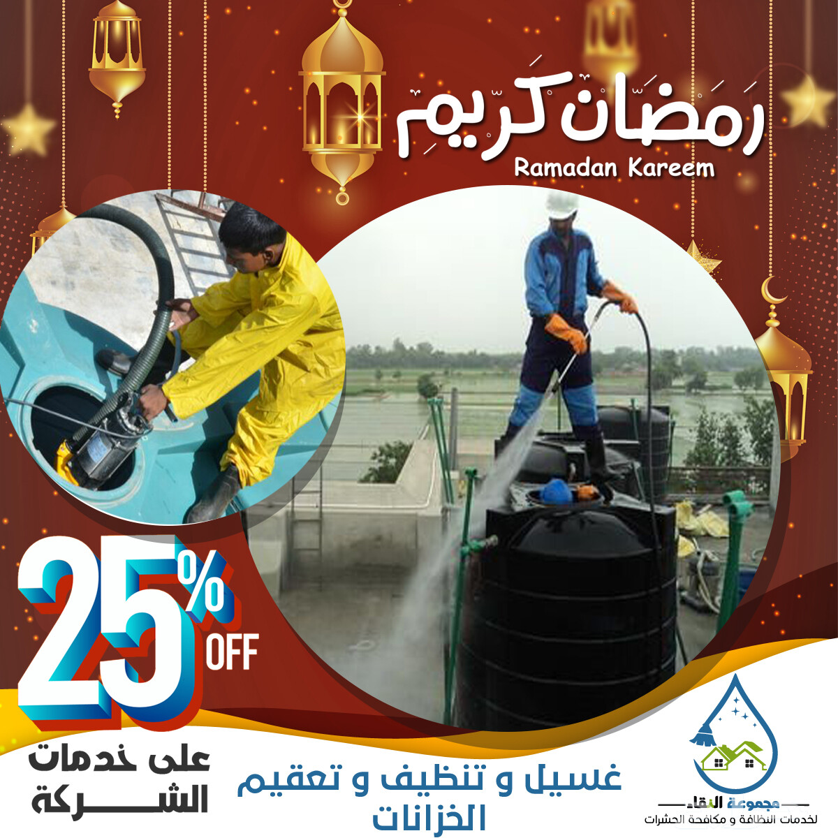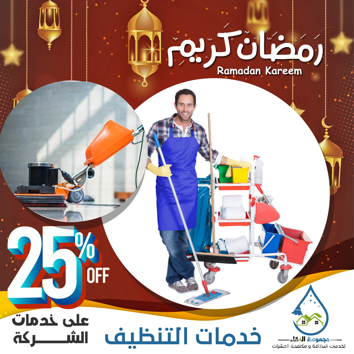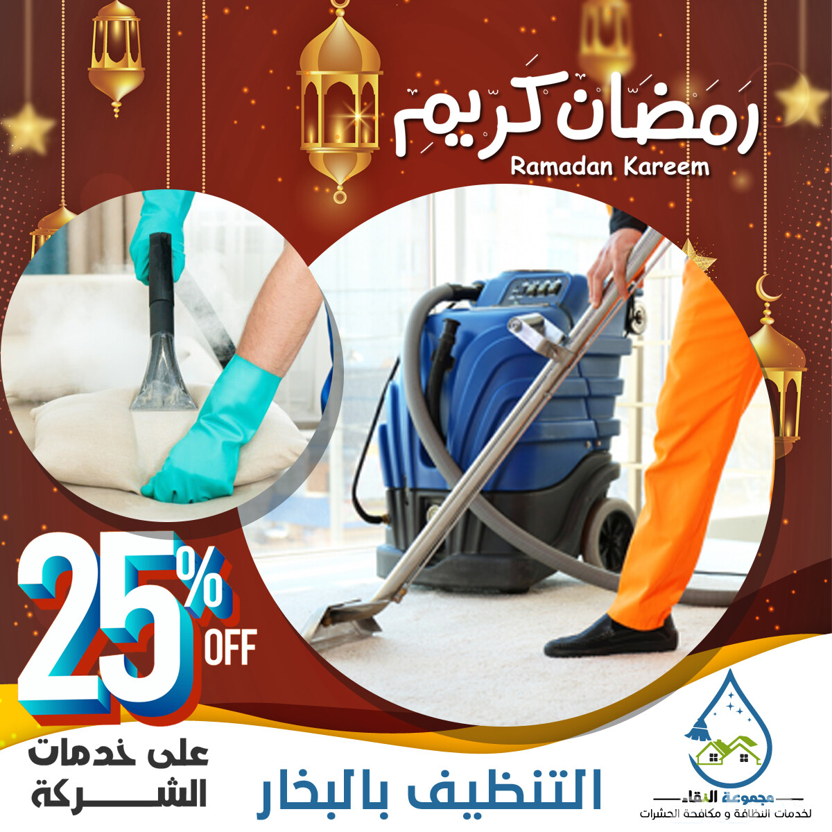 وتقدم الشركة خدمات تنظيف وتعقيم المنازل بخصم مميز يصل الى 25% بمناسبة شهر رمضان على كافة خدمات الشركة