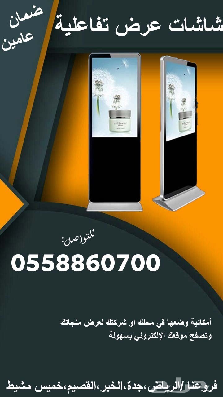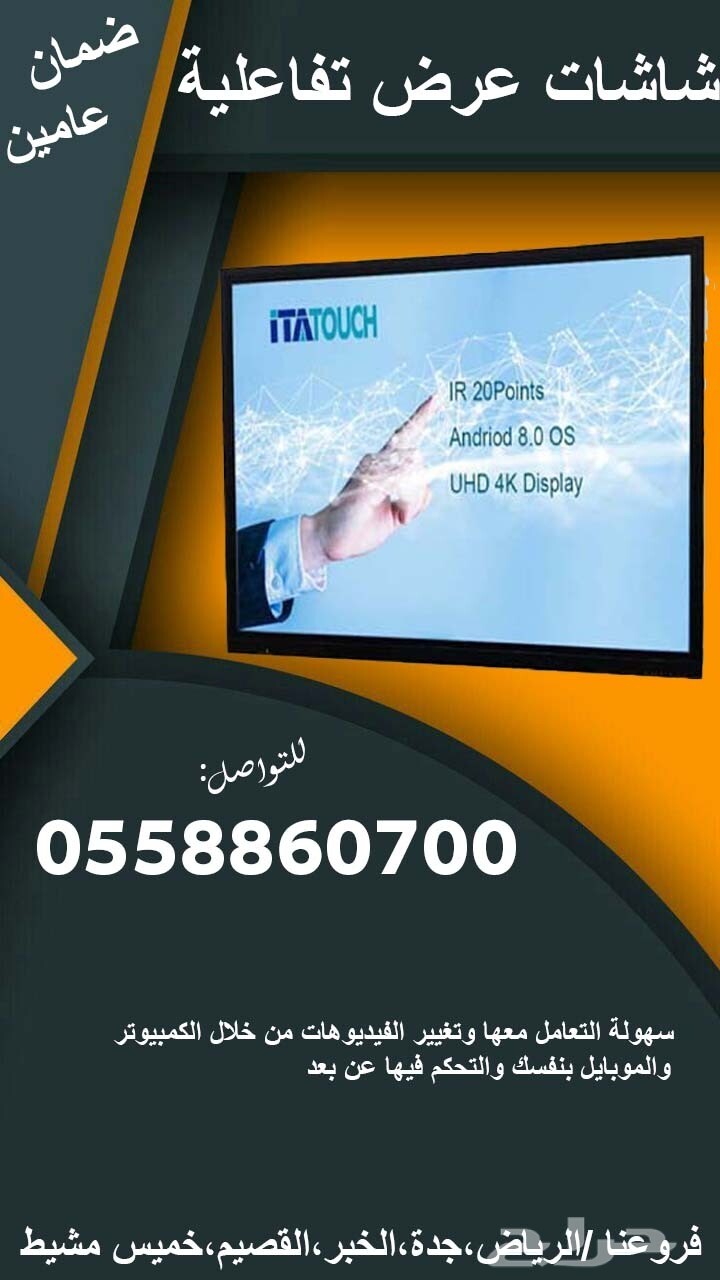 شاشات عرض تفاعلية جديدة للبيع بماحجام مختلفه 43-55-65 بوصه باللمس وبدون اللمس طوليه وعرضيه اندرويد وويندوزز لكافة الانشطة الدعائية والتفاعليه شاشات تفاعلية - شاشاتطوليه - شاشات تفاعلية عرضيه - شاشات تفاعلية باللمس - شاشات تفاعلية بدون لمس - شاشات تفاعلية وندوز - شاشات تفاعلية اندرويد للطلب والتواصل 0558860700