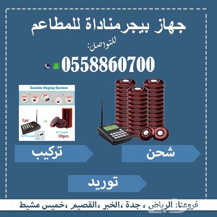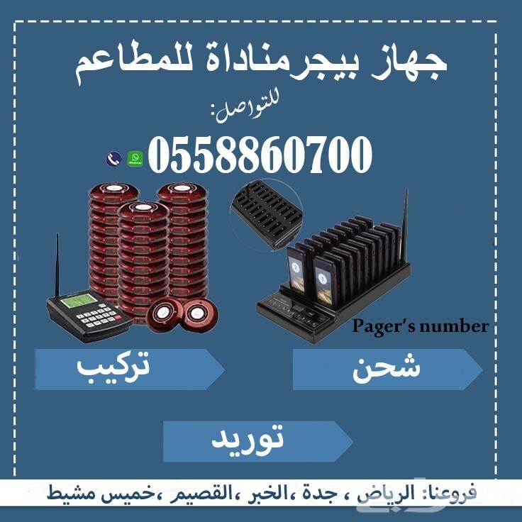 أجهزة بيجر المطاعم والكافيهات لمناداة النادل يتوافر لدينا بيجر المطاعم والكافيهات الحديث بيجر دائري ومساطيل نقوم باعمال البرمجه والتشغيل والتركيب مع ضمان عامين جدد مطعمك للتواصل جوال / واتس 0558860700 #بيجر مطاعم #بيجر كافيهات #بيجر مستطيل #بيجر دائري # بيجرمطاعم وكافيهات