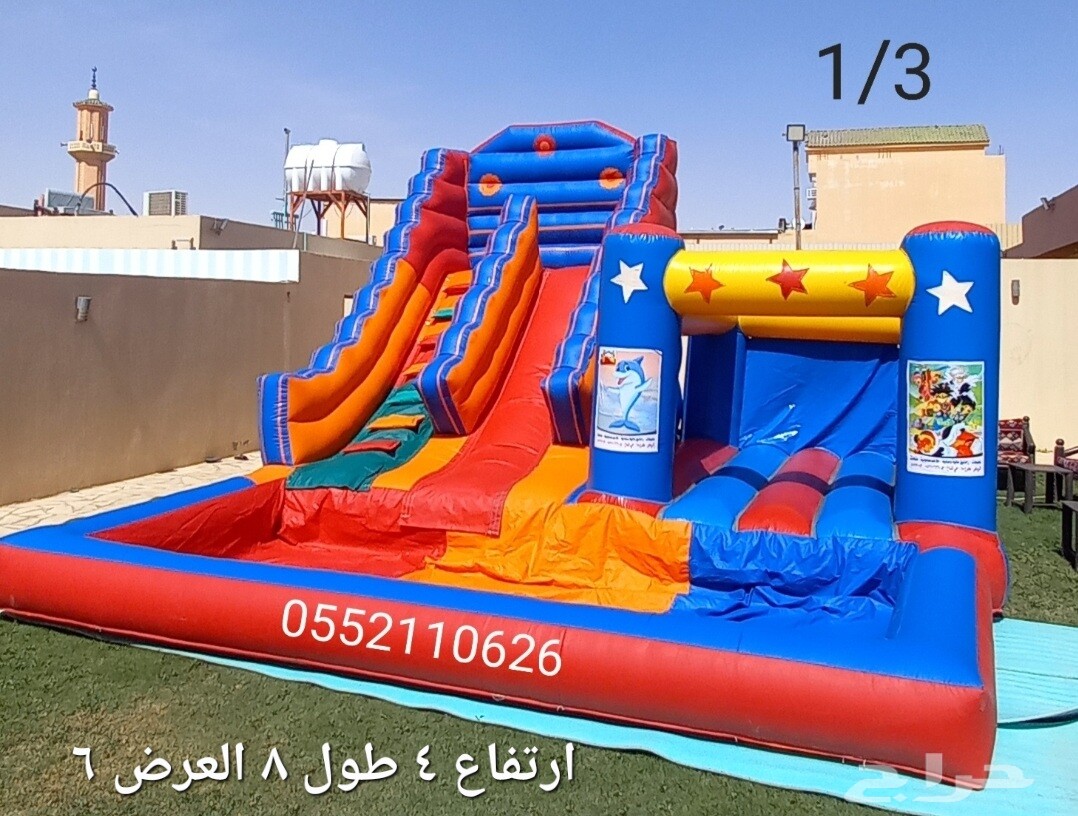 تأجير العاب مائيه والعاب هوائيه باقل الاسعار نطيطات زحاليق مائية ملاعب صابونيه جميع المقاسات متوفره زحاليق مع نطيطه مع مسبح مائي زحاليق مرتفعه ومتوسطه وصغيره العاب جديده وممتعه جدآ وباقل سعر خصم خاص للمدارس وحلقات التحفيظ للتواصل معانا اتصال او وتساب 0552110626