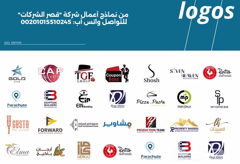 1.تصميم شعارات الشركات والمؤسسات ومختلف المشاريع التجارية (اللوجو).