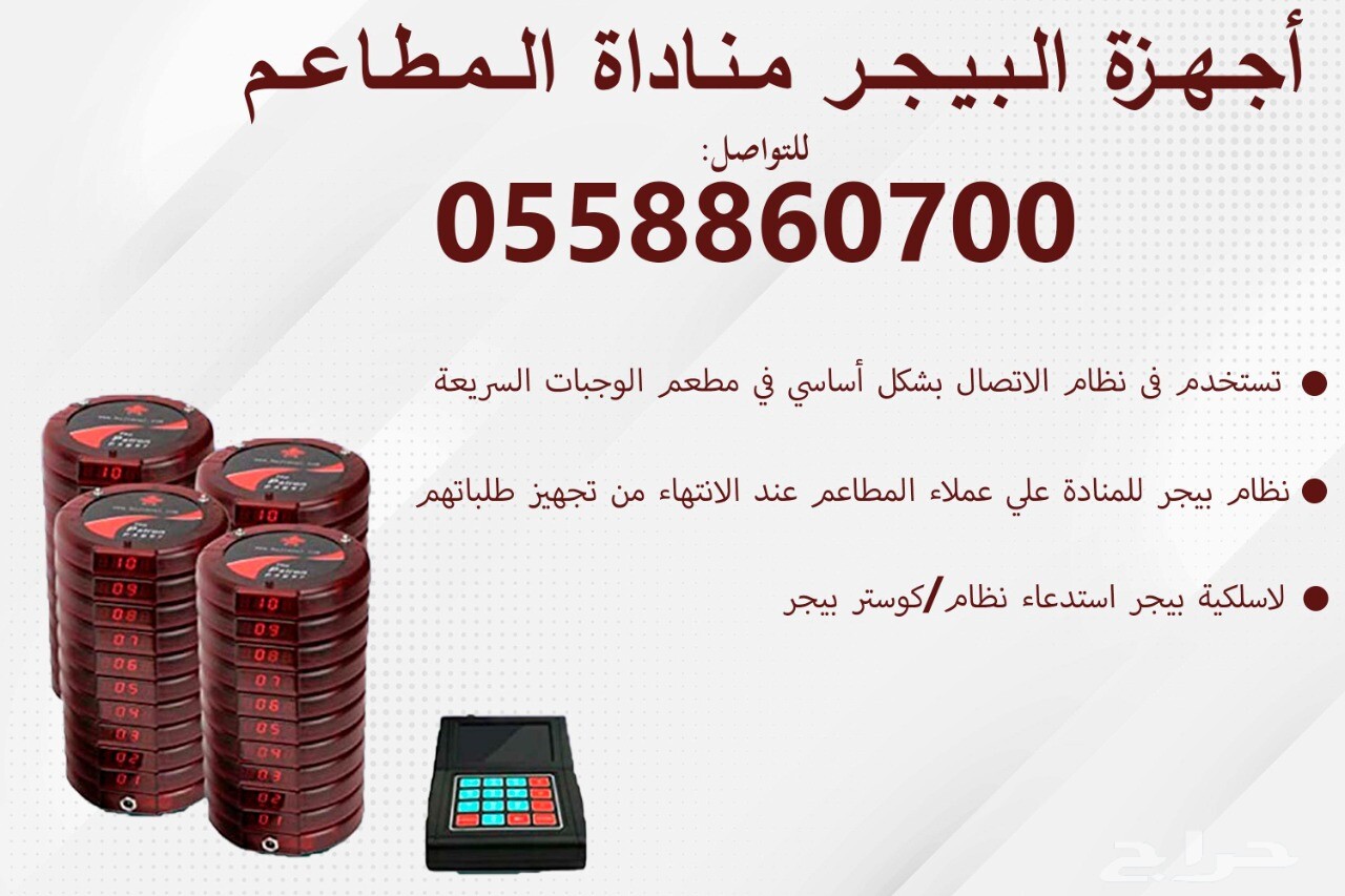 يتوافر لدينا أجهزة البيجر والمناداة للمطاعم والكافيهات الحديثة