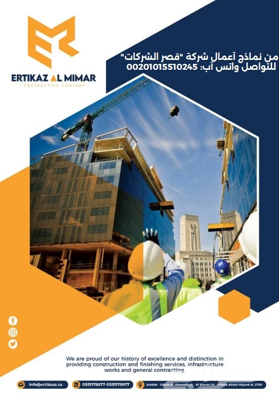 يمكنكم الاطلاع على نماذج أعمال بروفايل شركة احترافية وإبداعية لشركات تعاملت معنا على مدار 5 سنوات في مجال إعداد بروفايل الشركات والمؤسسات والمشاريع التجارية.