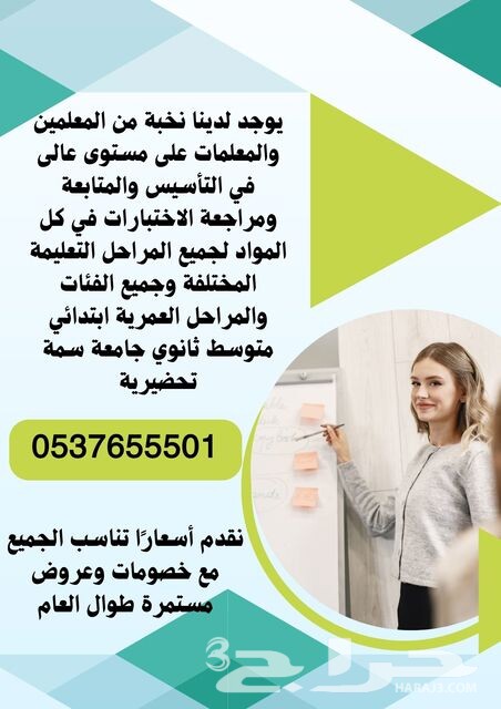 إذا كنت تبحث عن معلمة خصوصية محترفة تقدم خدمات تعليمية عالية الجودة في مكة المكرمة، فقد وصلت إلى الوجهة المثالية. نقدم تعليمًا متخصصًا يعتمد على خبرة تتجاوز 20 عامًا في التدريس لمساعدة أبنائك على تحقيق أفضل النتائج الأكاديمية.