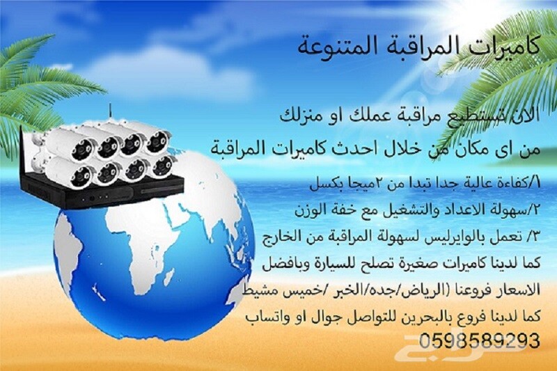 كاميرا المراقبه (الجودة لا تعنى زيادة الاسعار ) ___ كاميرات المراقبة مجموعه من افضل كاميرات المراقبة الليلية والنهارية وكاميرات حساسات الحركة MOTION DETECT ذات كفاءة عالية وجودة ممتازة تبدأ ب 2 ميجا بيكسل الي اعلى جودة حسب رغبة العميل وهناك ايضا مجموعه من كاميرات المراقبة بالرياض وايرلس وكاميرات مراقبة للسيارات صغيرة الحجم و بأرخص الاسعار، الكاميرات موجودة لدي شركة رحاب التنمية جميعها اصلية والشركة الوكيل الحصري لكبري الشركات المنتجة للأنظمة الامنية . فروعنا بالمملكة العربية السعودية بالرياض – القصيم – الخبر –المشيط ـ ونشحن الى جميع المحافظات والمدن ولنا فروع بدولة البحرين للتواصل /جوال او واتساب 0598589293