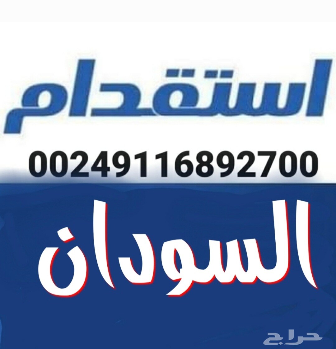 استقدام عماله من السودان باذن الله نوفر لك عماله سودانيه علي حسب طلبك جميع المهن سائقين نقل خفيف سائقين نقل ثقيل حداد لحام نجار عمال سوبر ماركت ثلاجات عمال مطاعم وكافتريات معلمين ورش مكانيكا ديزل وبنزين محاسبين عمال مغاسل سيارات مشرفين عمال مناديب مبيعات موسسات وشركات مصممين جرافيك عمال طباعه وتصوير قرطاسيه رعاه اغنام وابل طباخين مهرة وكل المهن الحرفيه عاملك علينا شغلنا مضمون وعلي ثقه اطلب وانت مطمئن واتوكل علي الله ونحن نرضيك ماعلينا بالاقوال والكلام السي في حق العامل والكفيل المسلم من سلم الناس من لسانه فترة الاستقدام من 15 الي 30 يوم فقط لانتعامل بدون تاشيرة جاهزة للعامل اتواصل معنا علي الارقام الموضحه كن معنا جاد نرضيك باذن الله الارقام 00249997272833 00249116892700